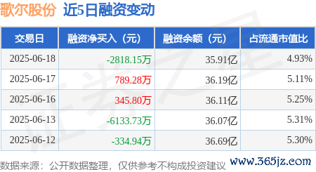 本站消息,6月18日鑫优配,歌尔股份(002241)融资买入2.79亿元,融资偿还3.07亿元,融资净卖出2818.15万元,融资余额35.91亿元。