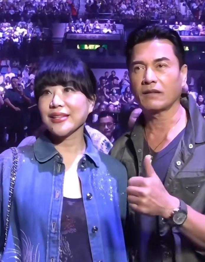 吕良伟和妻子杨小娟也现身这次演唱会现场,杨小娟看起来别有一种富态美,面容有光泽,保养的很好。