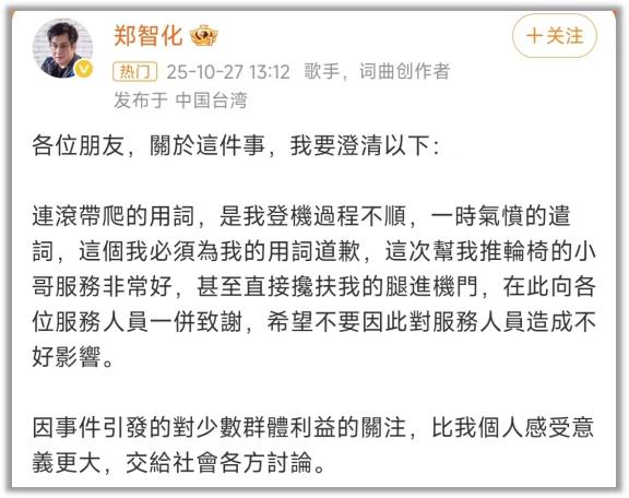 最新的热搜,是郑智化道歉。