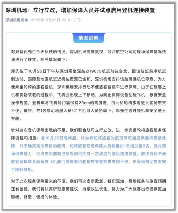 就在大家议论纷纷的时候,挨了骂的深圳机场出来说明问题了。