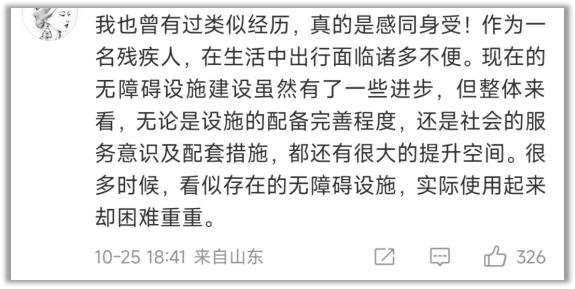 有过类似遭遇的残障人士也借此机会出来吐槽"出行难"。
