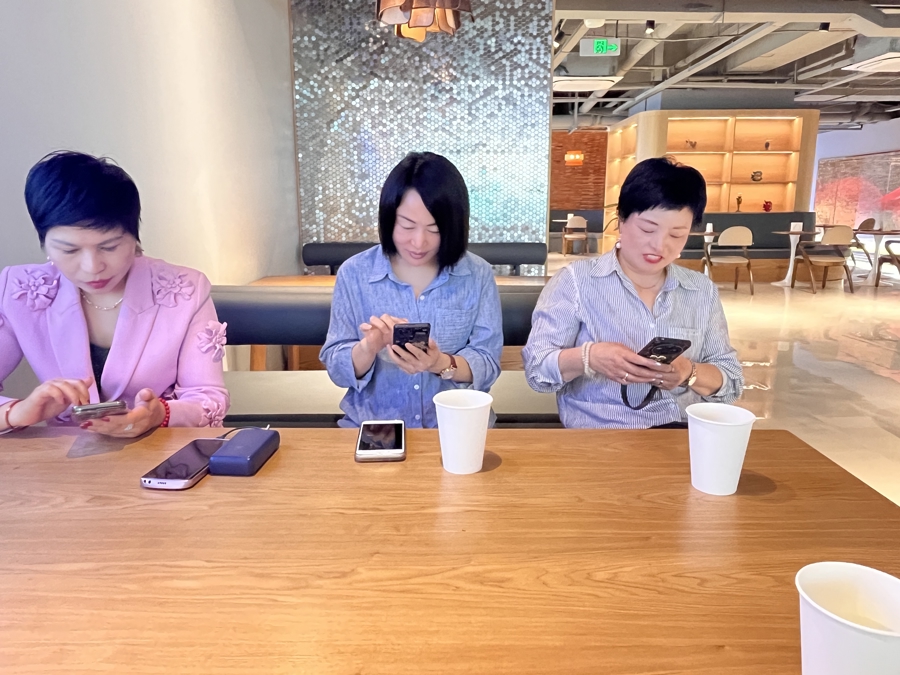 “70后”王守霞将段海英和王名城视为自己的老师。“直播带货,我们这代人根本没干过。”她留着一头利落的短发,手指轻敲桌面,“我2014年开始做电商,那时候躺着都能赚钱。我也投过3000多万元的矿山,后来环保管制全切了。生意场上起起落落很正常,危机后面就是转机,就看你敢不敢接这泼天的富贵,AI就像给传统商铺插上翅膀……”
