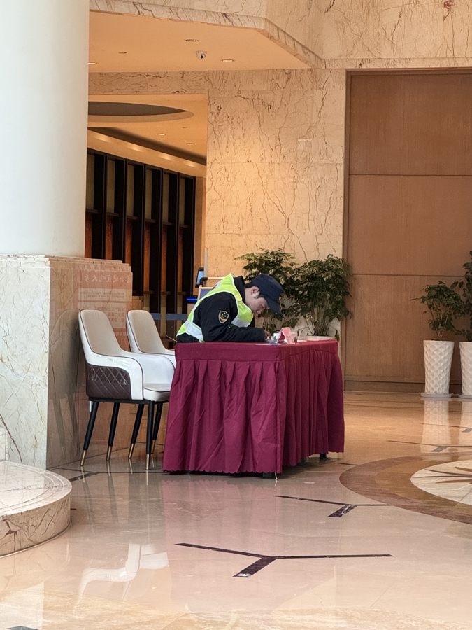 24小时执勤的安保人员和随处可见的警示宣传。 雷册渊 摄