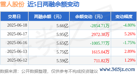 本站消息,6月18日,雪人股份(002639)融资买入1.37亿元,融资偿还1.66亿元,融资净卖出2851.31万元智财资本,融资余额5.66亿元。
